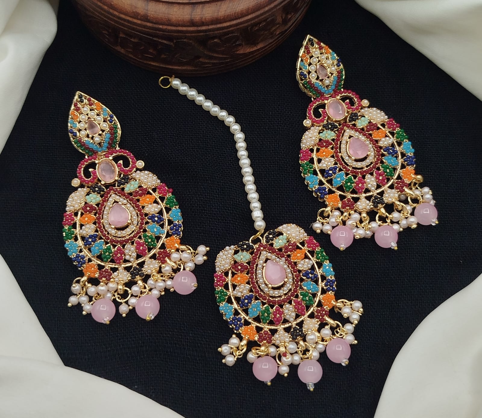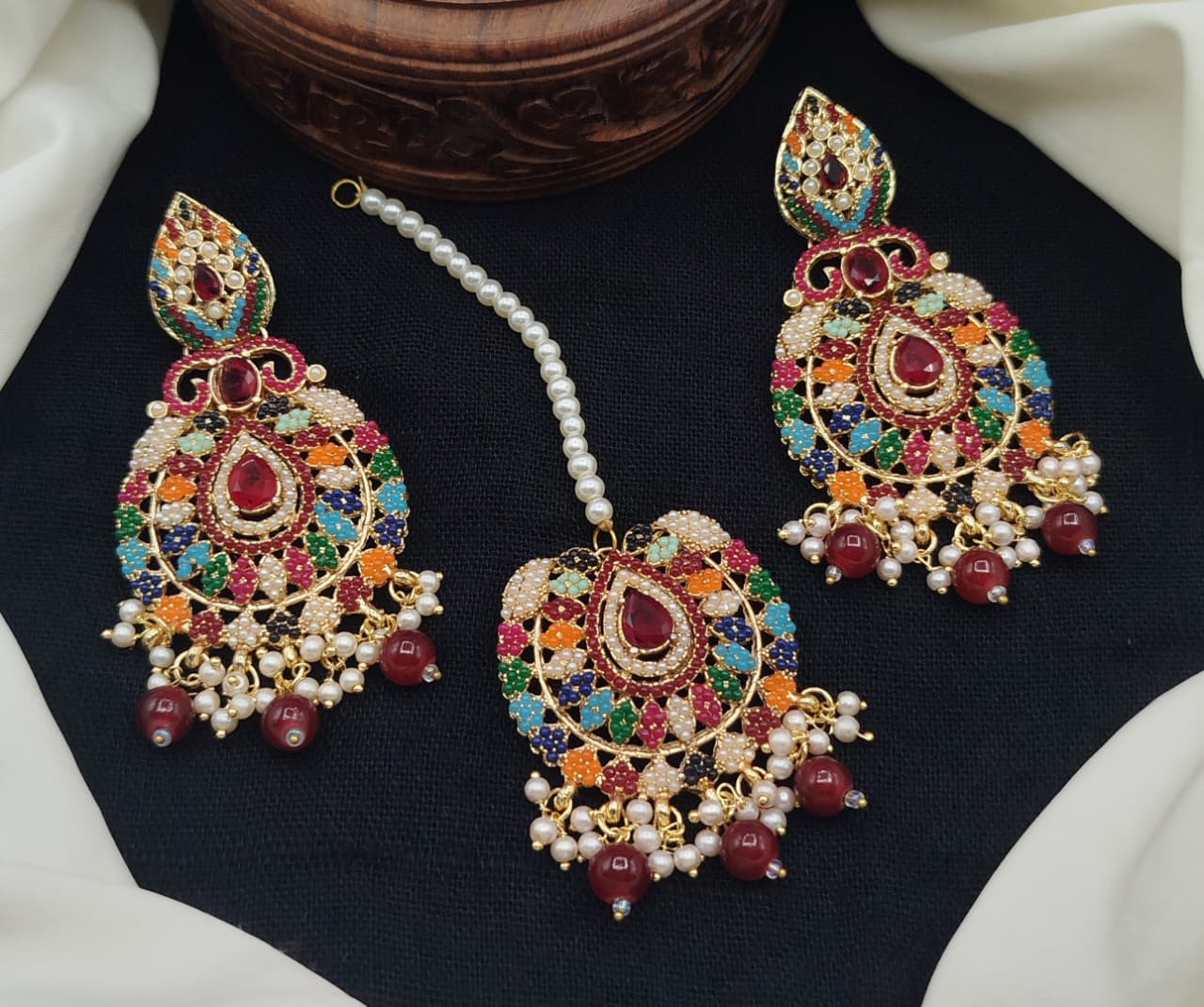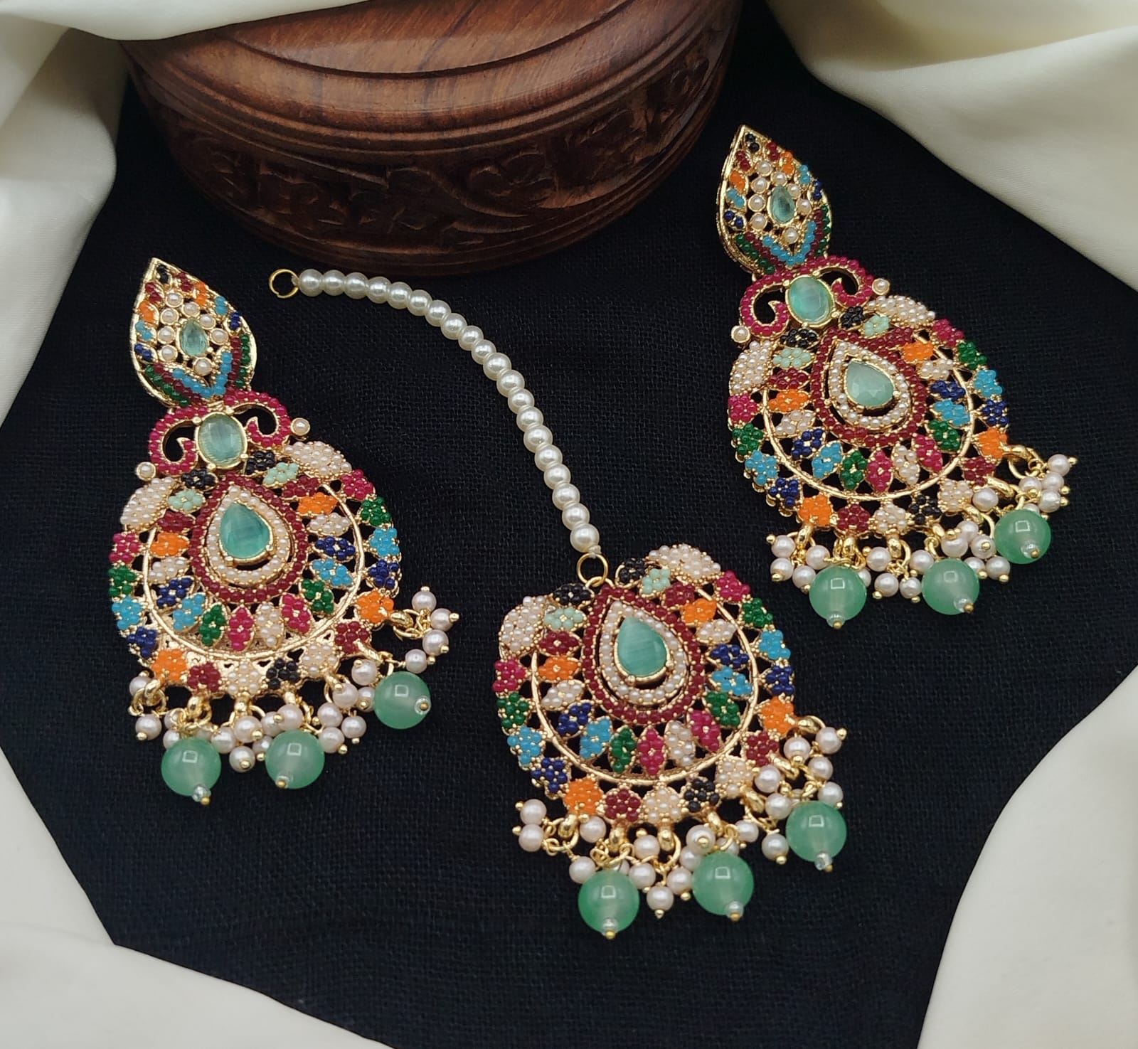 Beautiful Nauratan & Zircon Earring with Teeka.