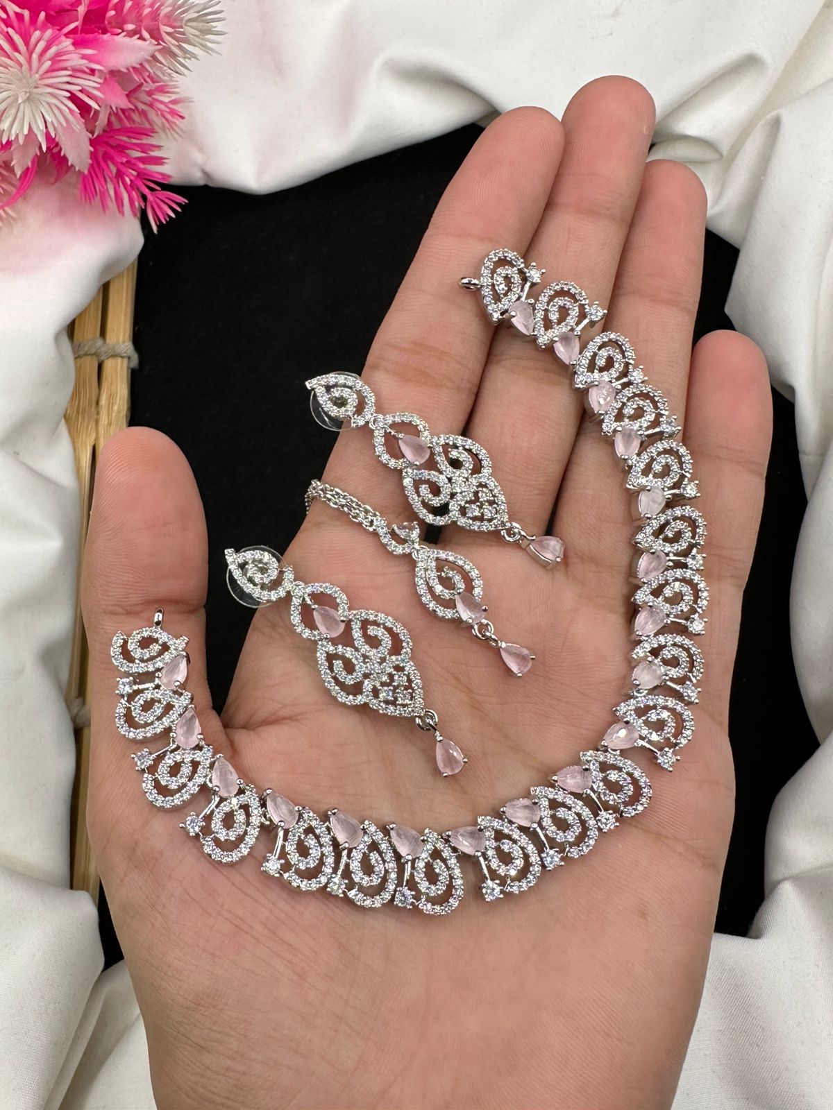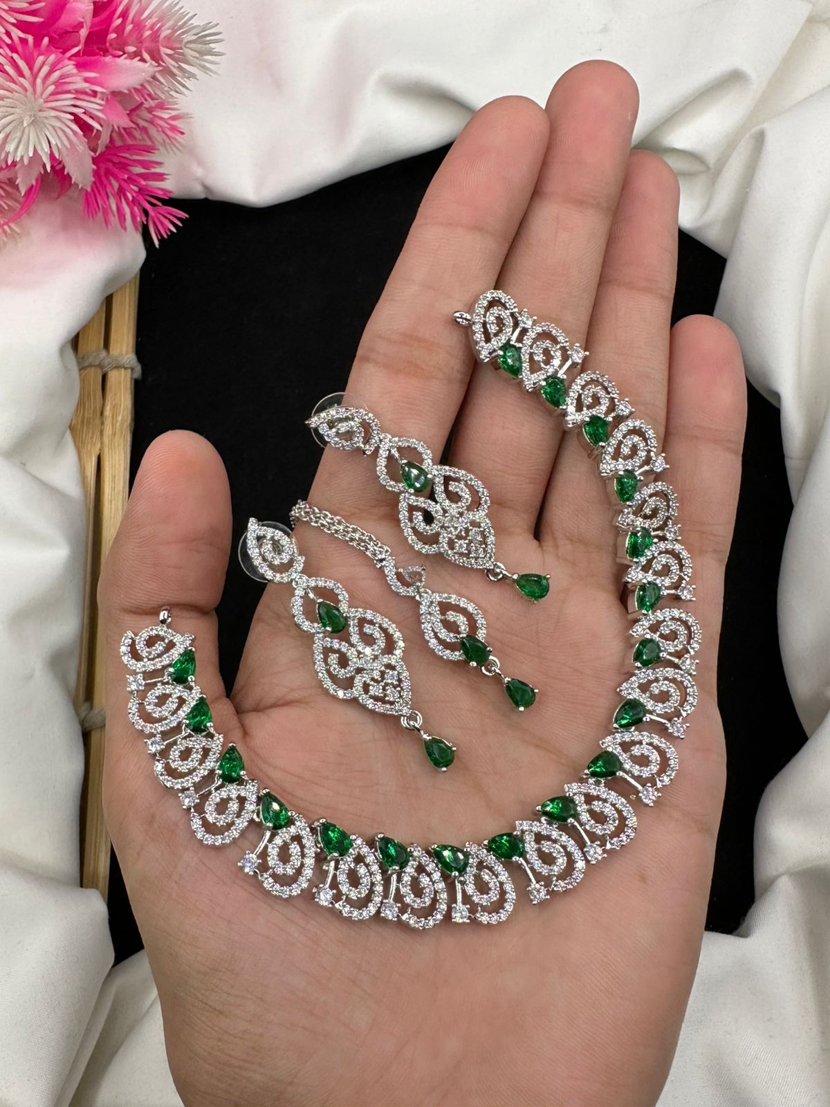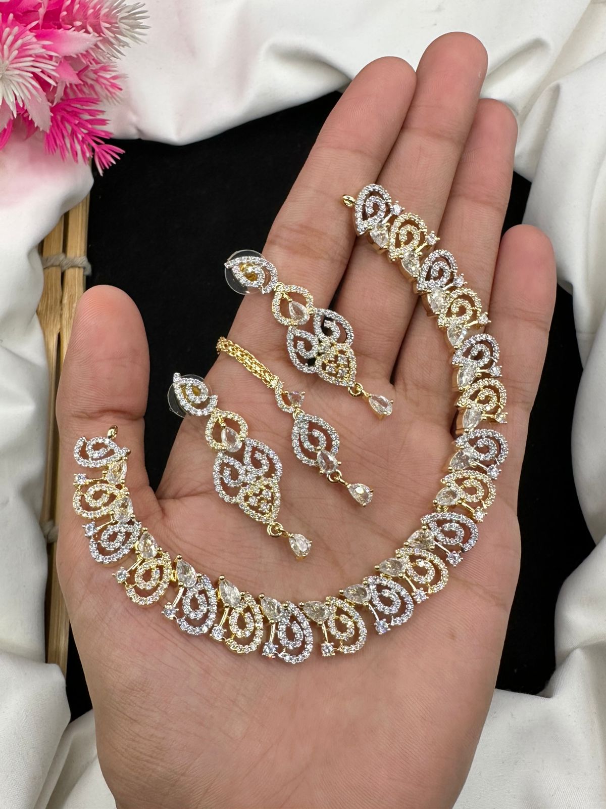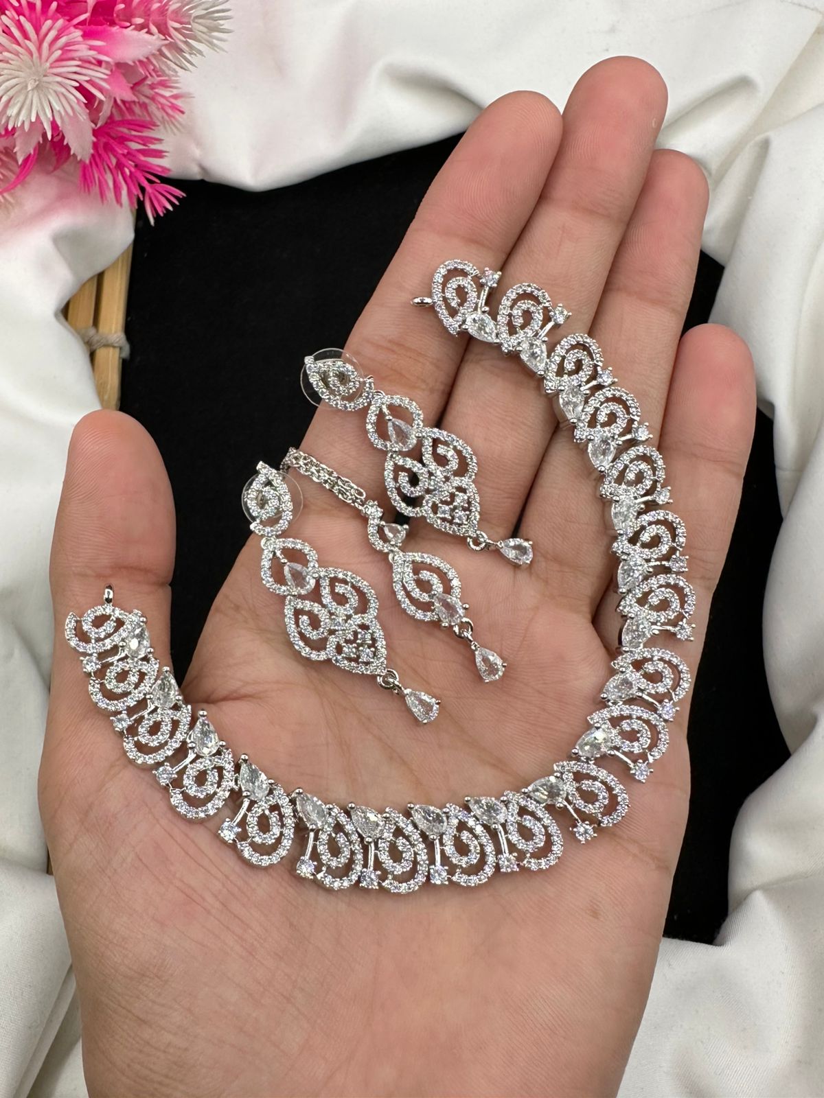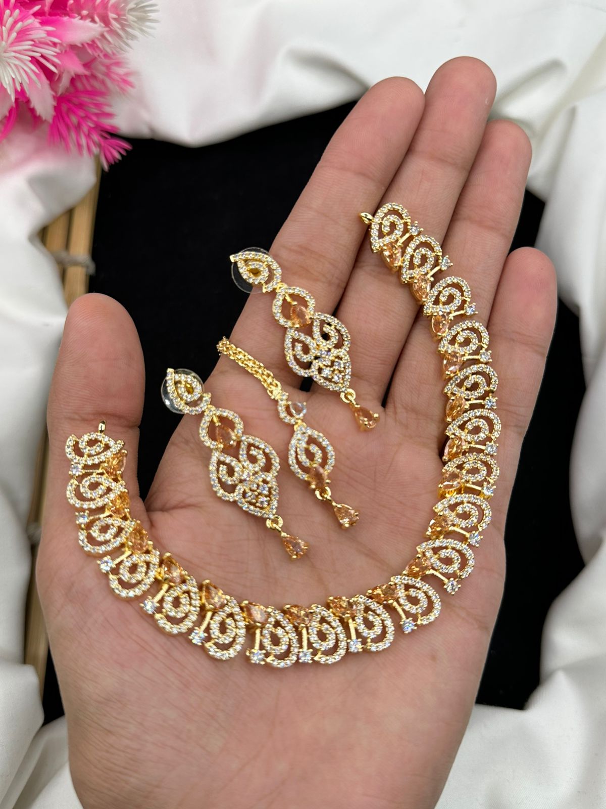 Shine with style in this beautiful and elegant Indian zircon necklace set.